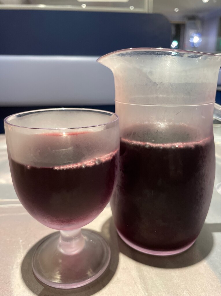 ここらでワイン追加で”デカンタ赤250ml(200円)”。