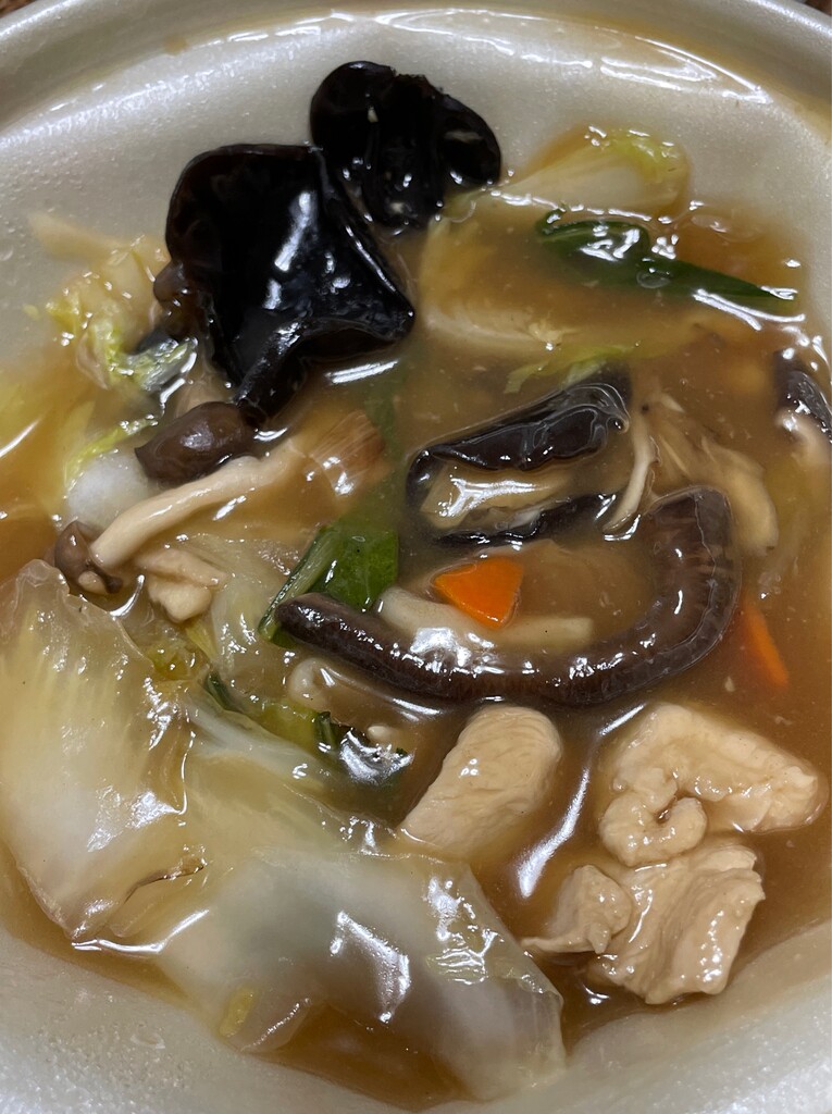 11月限定”鶏ときのこのあんかけ焼そば(736円)”。