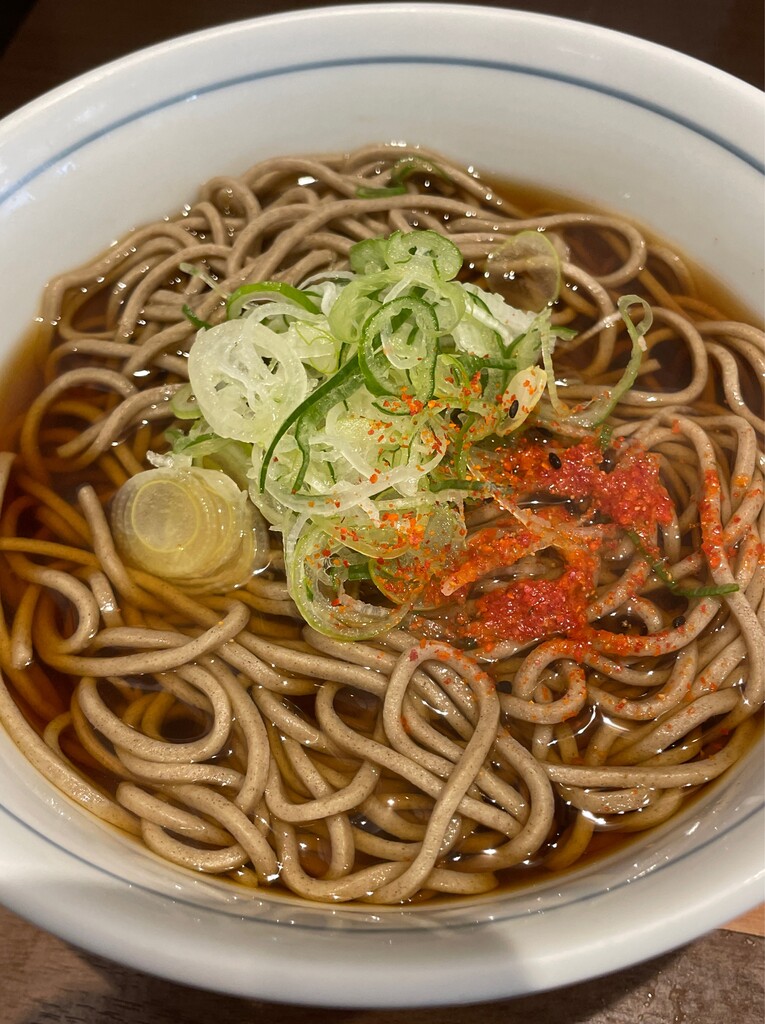 やや色濃いめの出汁に細めのしっかり蕎麦。