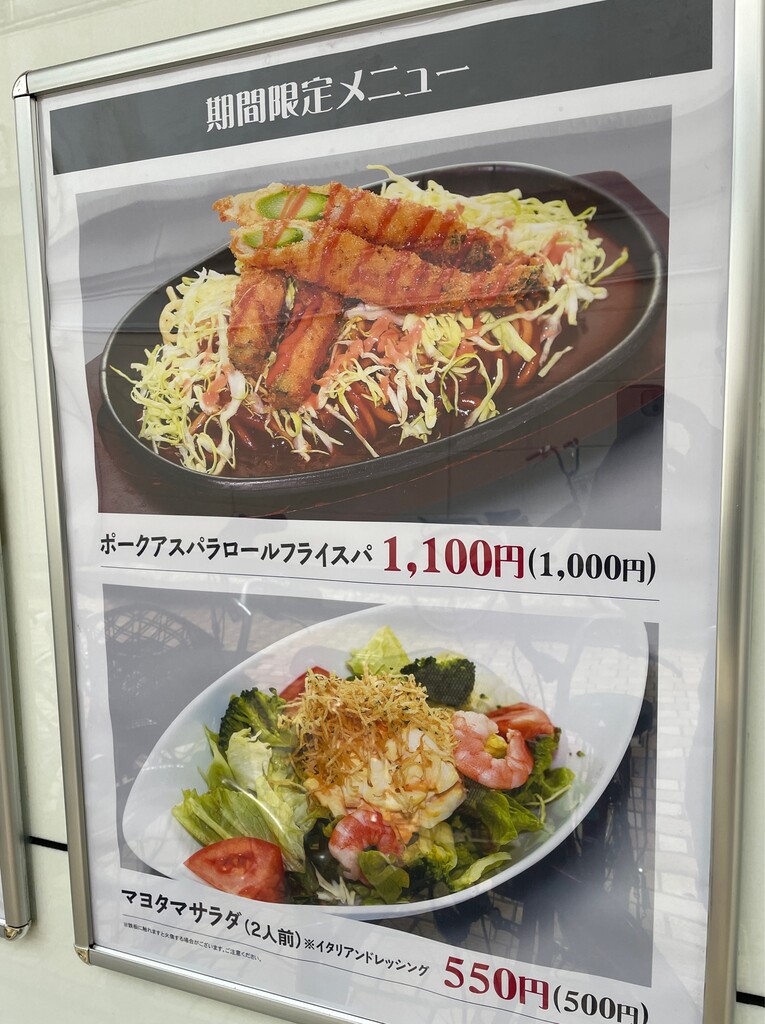 ”ポークアスパラロールフライスパ(1100円)”。