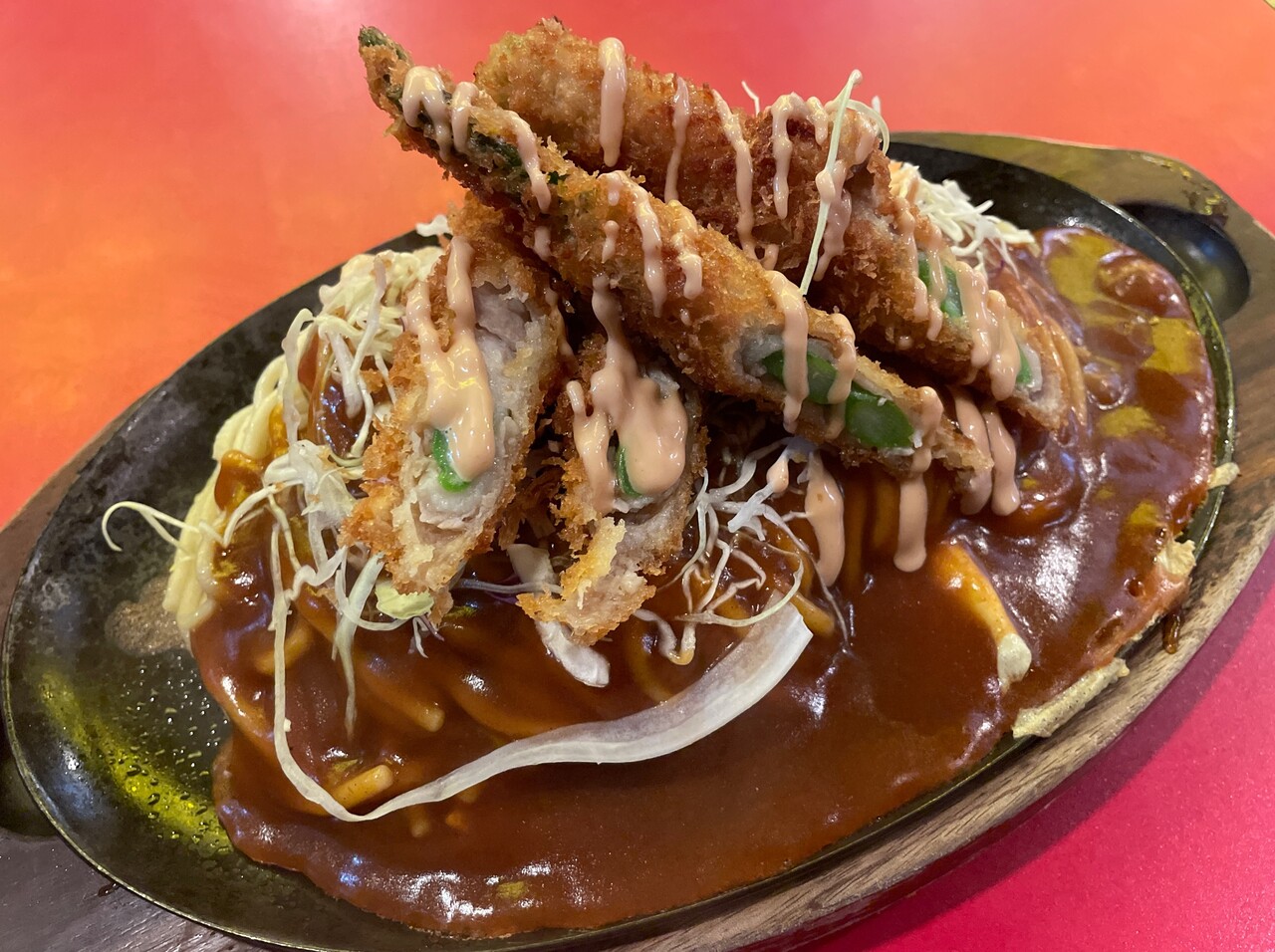 熱々鉄板にもっちり太麺とピリ辛ソース。