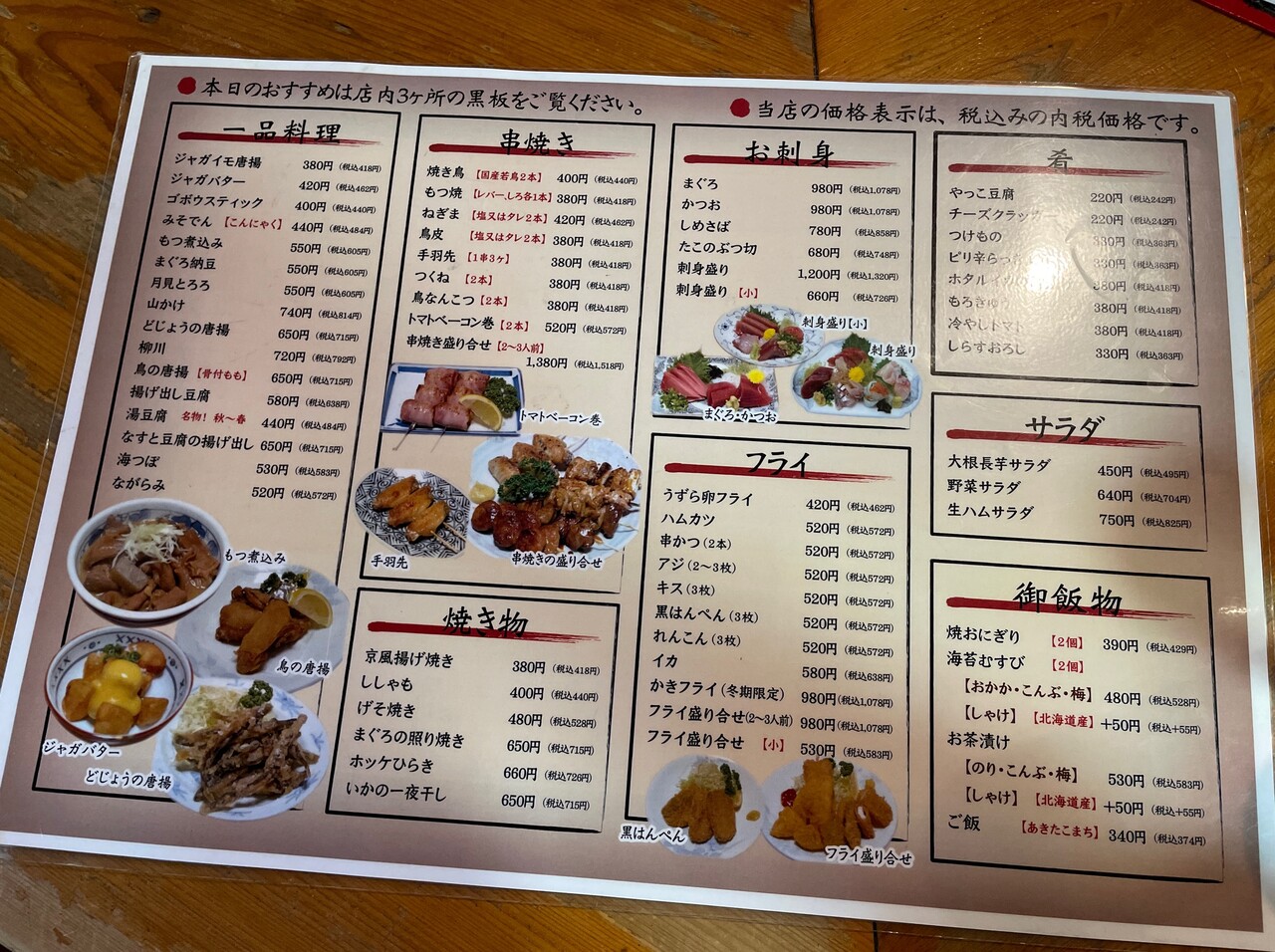 刺身から焼物、揚物などなど居酒屋料理が一通り。