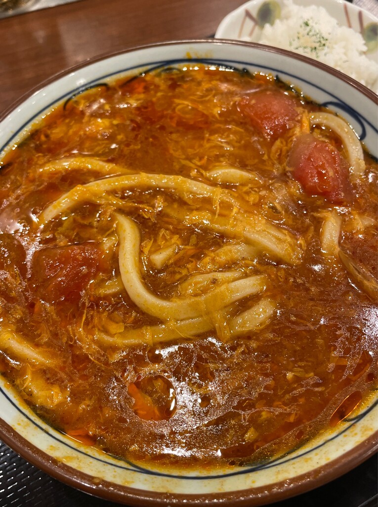 丸亀製麺@豊川・御油で、トマたまカレーうどん大。