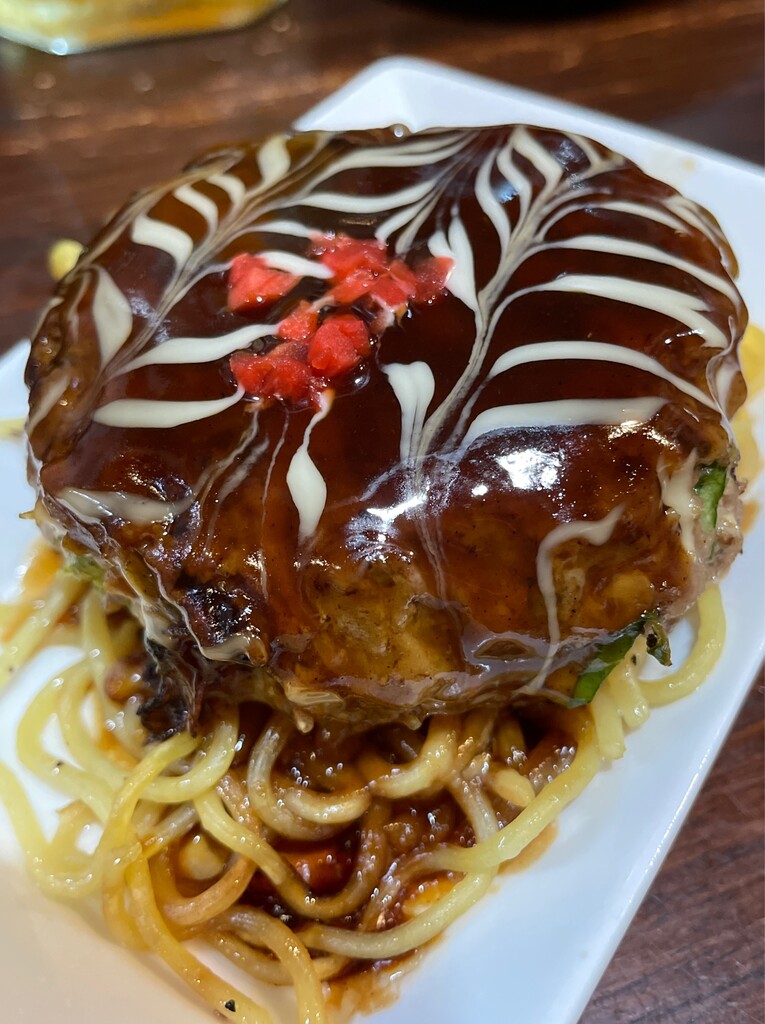 キャベツが入ったお好み焼き風ハンバーグ。