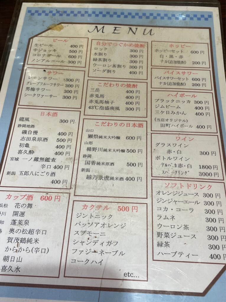 つまみ系は壁の黒板と目の前の冷蔵ケースに。
