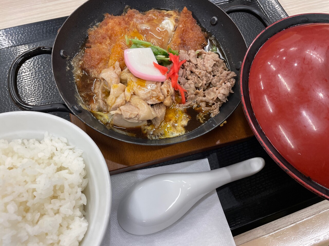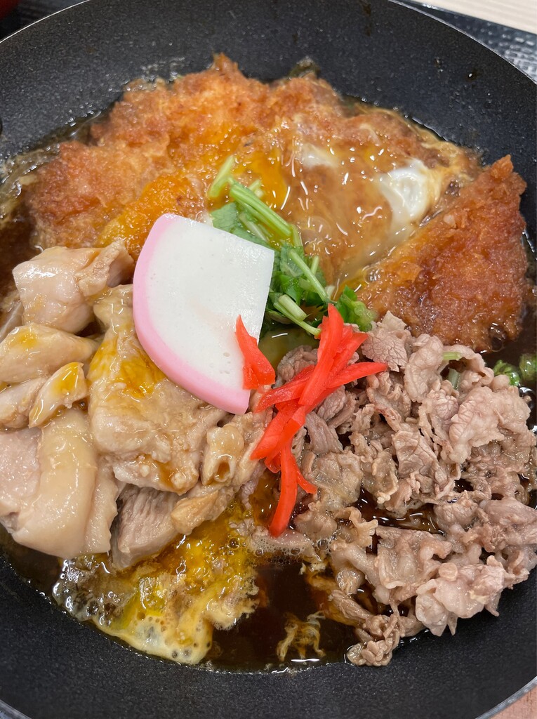 牛丼・親子丼・カツ丼が同時に楽しめる一杯。