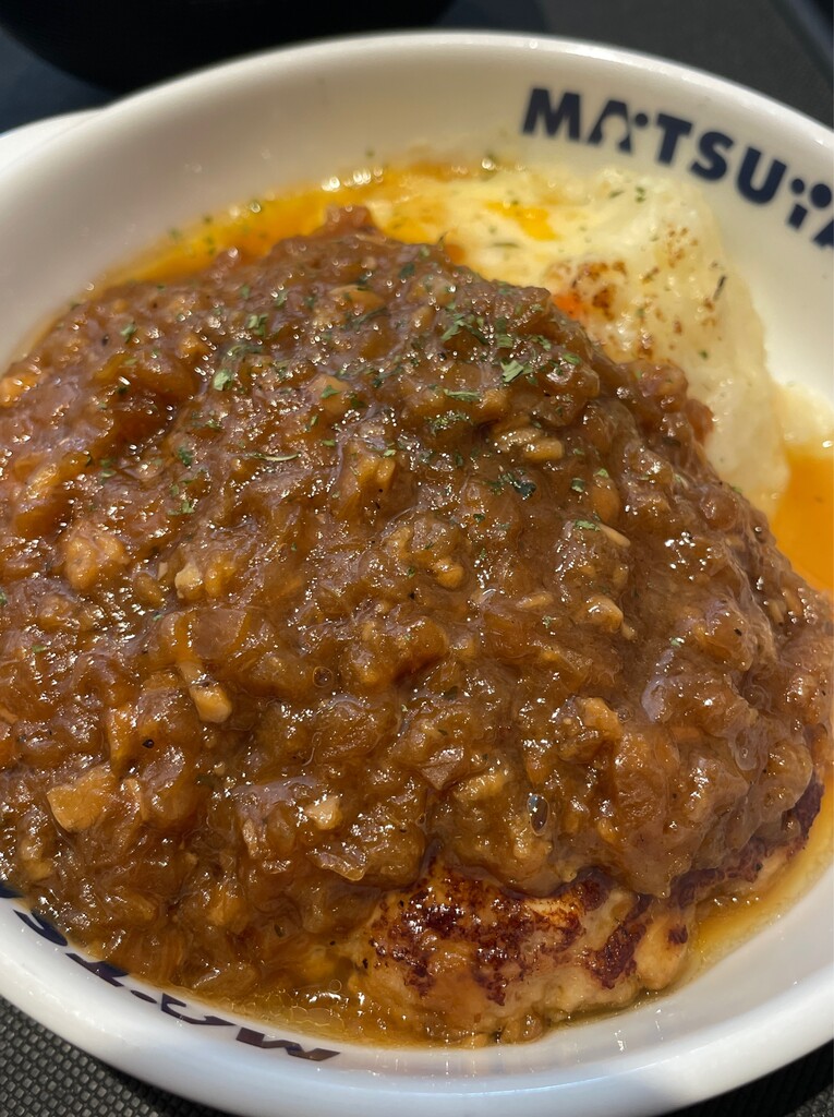 松屋@浜松で、シャリアピンソースハンバーグ定食。