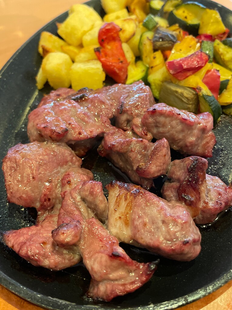 ラム肉に彩り野菜にポテト。
