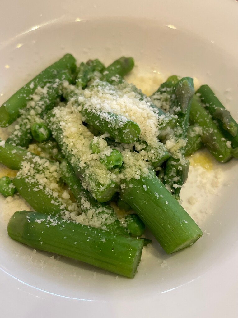 ”アスパラガスの温サラダ”に”柔らか青豆の温サラダ”。