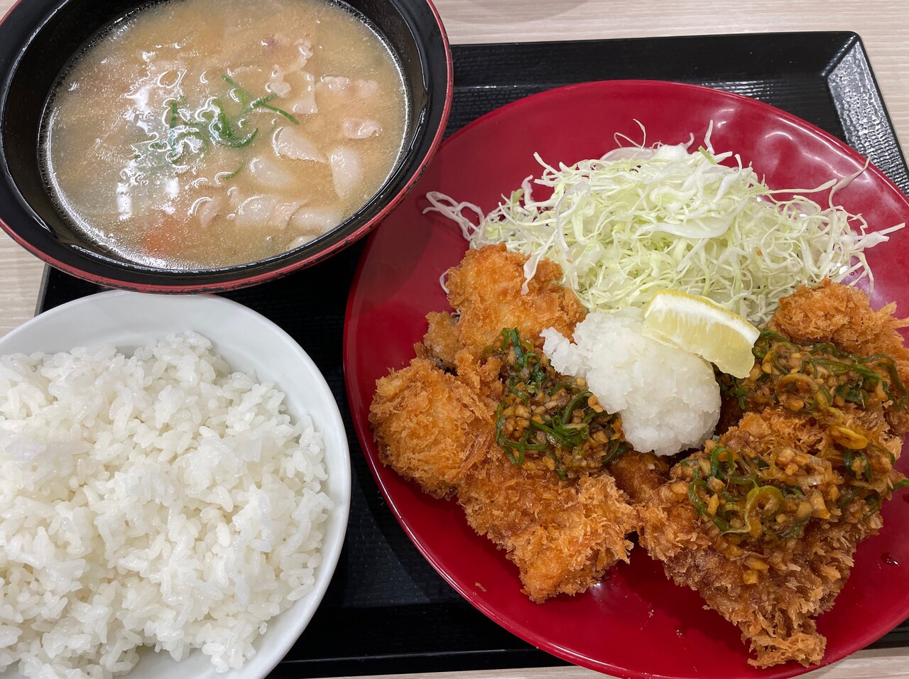 薬味ダレにおろしでレモンで意外とさっぱり。