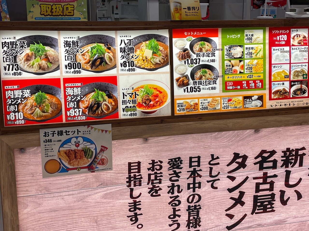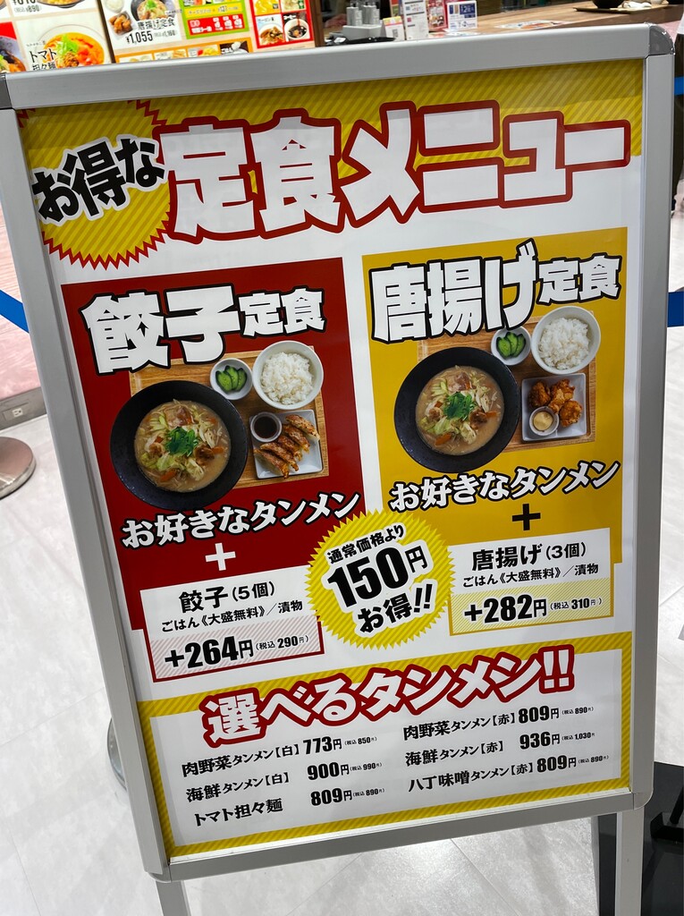 赤と白、それに八丁味噌タンメンにサイドメニュー。