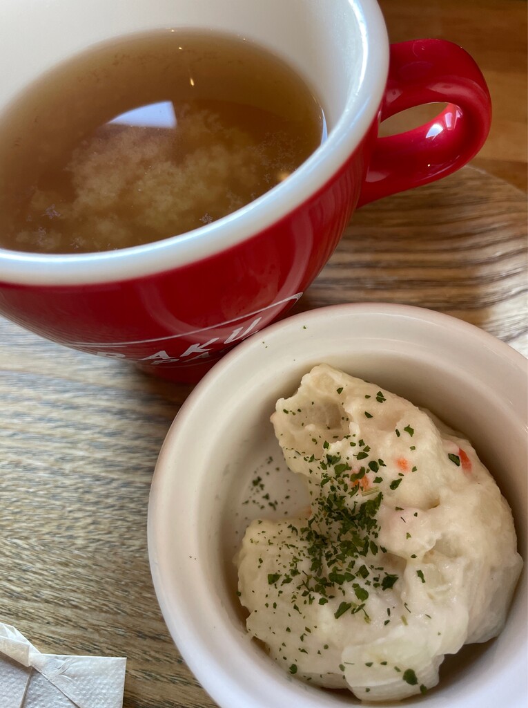 ポテサラと味噌汁付き。