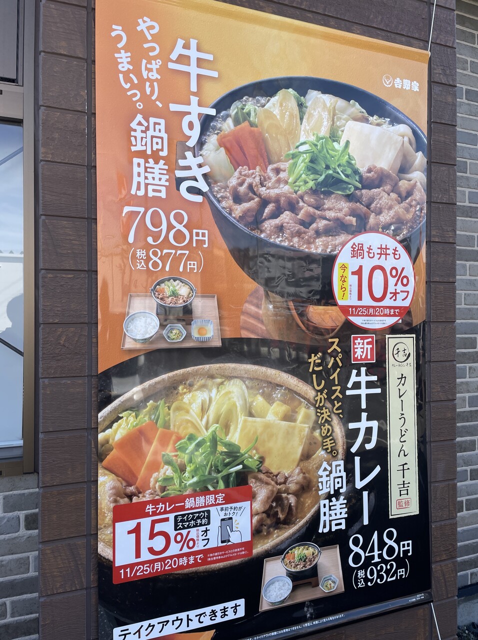 冬の吉野家は鍋。