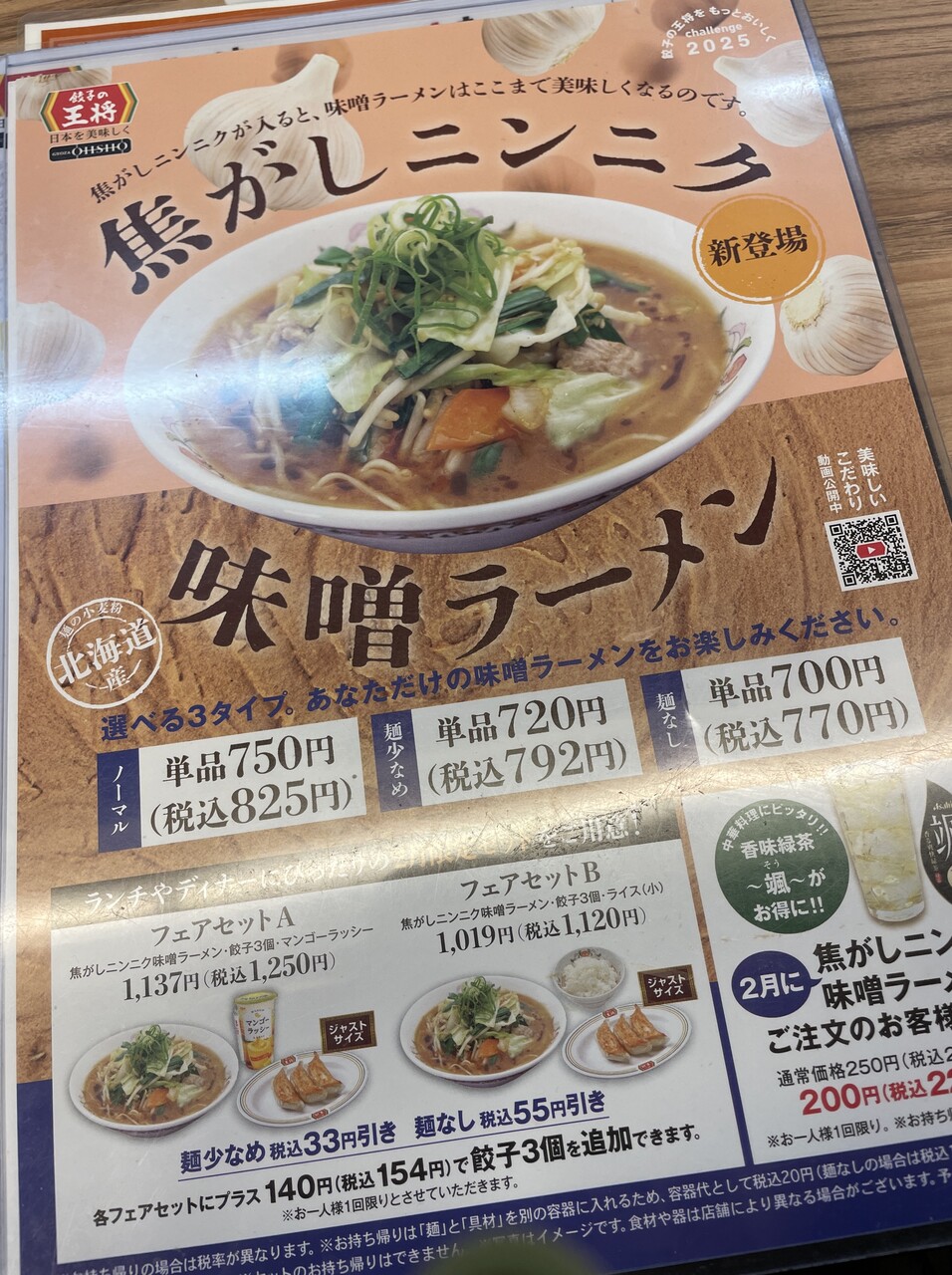 餃子の王将@豊橋で、焦がしニンニク味噌ラーメン フェアBセット。
