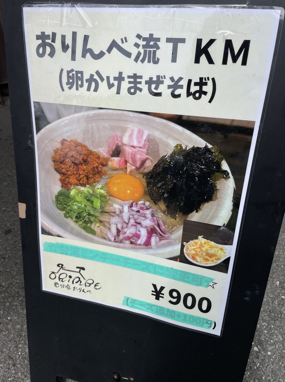 メインは”おりんべ流TKM(卵かけまぜそば)”。