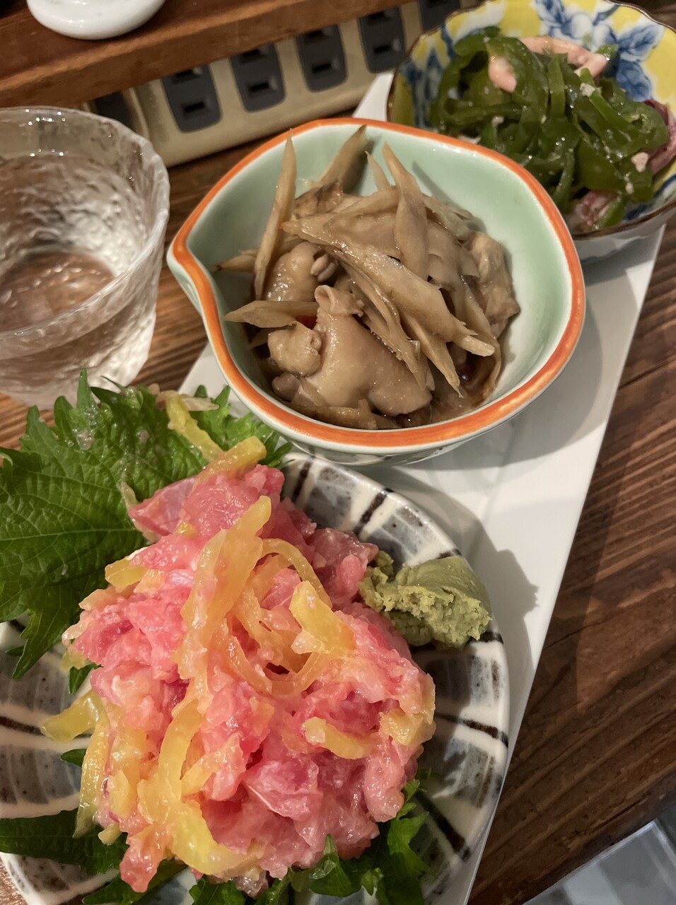やいちゃん@名古屋・伏見で、三種盛り+日本酒ほか。