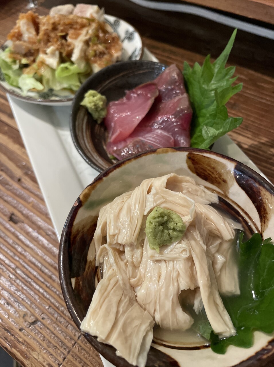 さっぱり湯葉、ハマチにしが、最後はしっかり蒸し鶏。