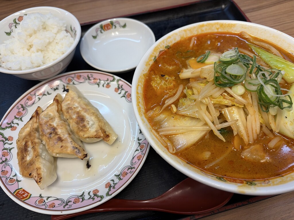 メインの火鍋湯麵に半餃子に小ライス。